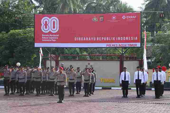 Momentum upacara detik-detik Proklamasi HUT ke-80 Kemerdekaan RI ini diharapkan menjadi kobaran semangat bagi personel Polri Polres Aceh Timur untuk senantiasa melaksanakan tugas dan tanggung jawab dengan pengabdian maksimal, tulus, dan ikhlas kepada bangsa serta masyarakat.