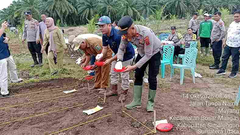ATAPKOTA.COM, SIMALUNGUN – Polsek Bosar Maligas turut mendukung dan mengawal program ketahanan pangan nasional melalui kegiatan penanaman jagung di Afdeling II Kebun PTPN IV Regional II Mayang, Nagori Mayang, Kecamatan Bosar Maligas, Kabupaten Simalungun, pada Selasa (14/10/2025).