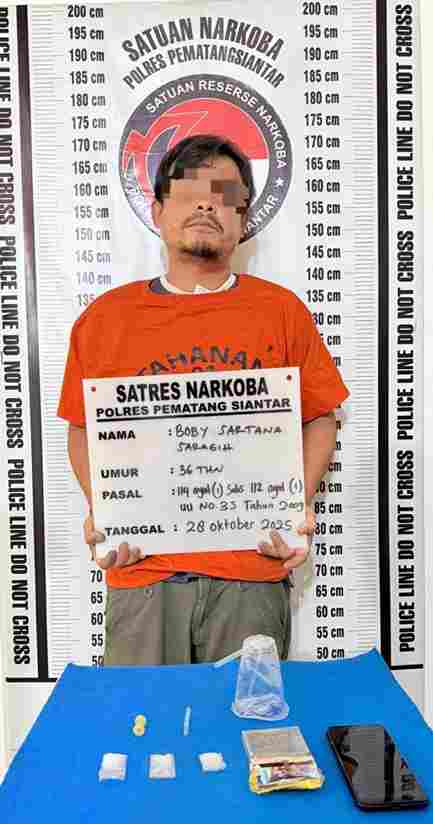 Seorang pria berinisial BSS (36), warga Jalan Jombit, Desa Sondi Raya, Kecamatan Raya, Kabupaten Simalungun, ditangkap polisi setelah kedapatan memiliki narkotika jenis sabu dengan berat bruto 4,47 gram.