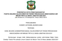 ATAPKOTA.COM, PEMATANGSIANTAR — Pemerintah Kota Pematangsiantar melalui panitia seleksi mengumumkan hasil seleksi administrasi calon Direktur Teknik Perusahaan Umum Daerah (Perumda) Air Minum Tirta Uli…